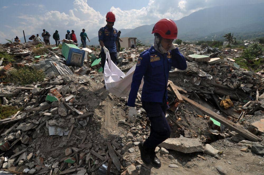Gempa, tsunami, dan likuefaksi terjadi secara bersamaan pada 28 September 2018. Gempa dengan kekuatan magnitudo 7,4 memicu tsunami dan likuefaksi yang menewaskan ribuan orang.